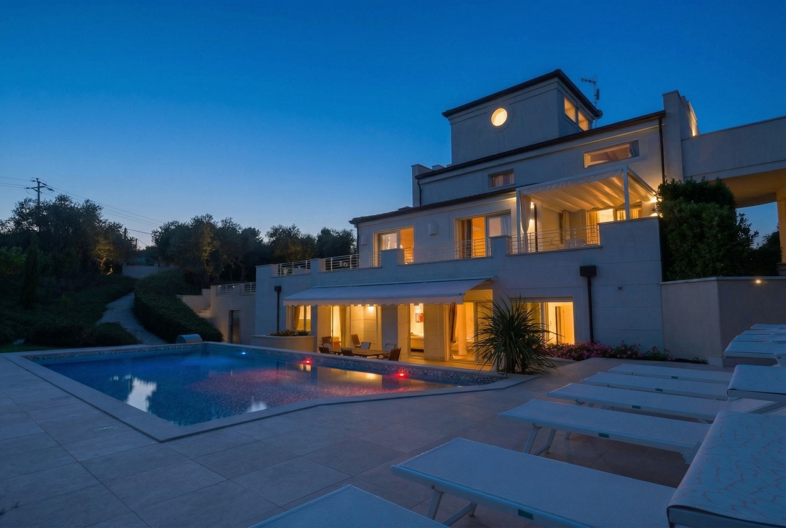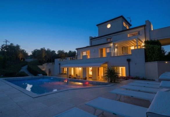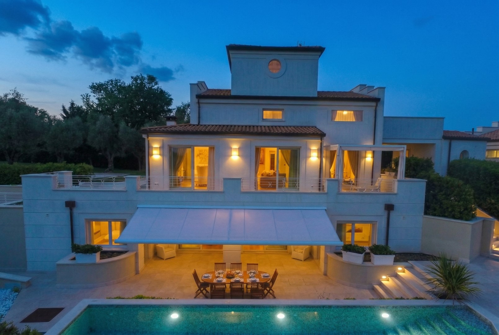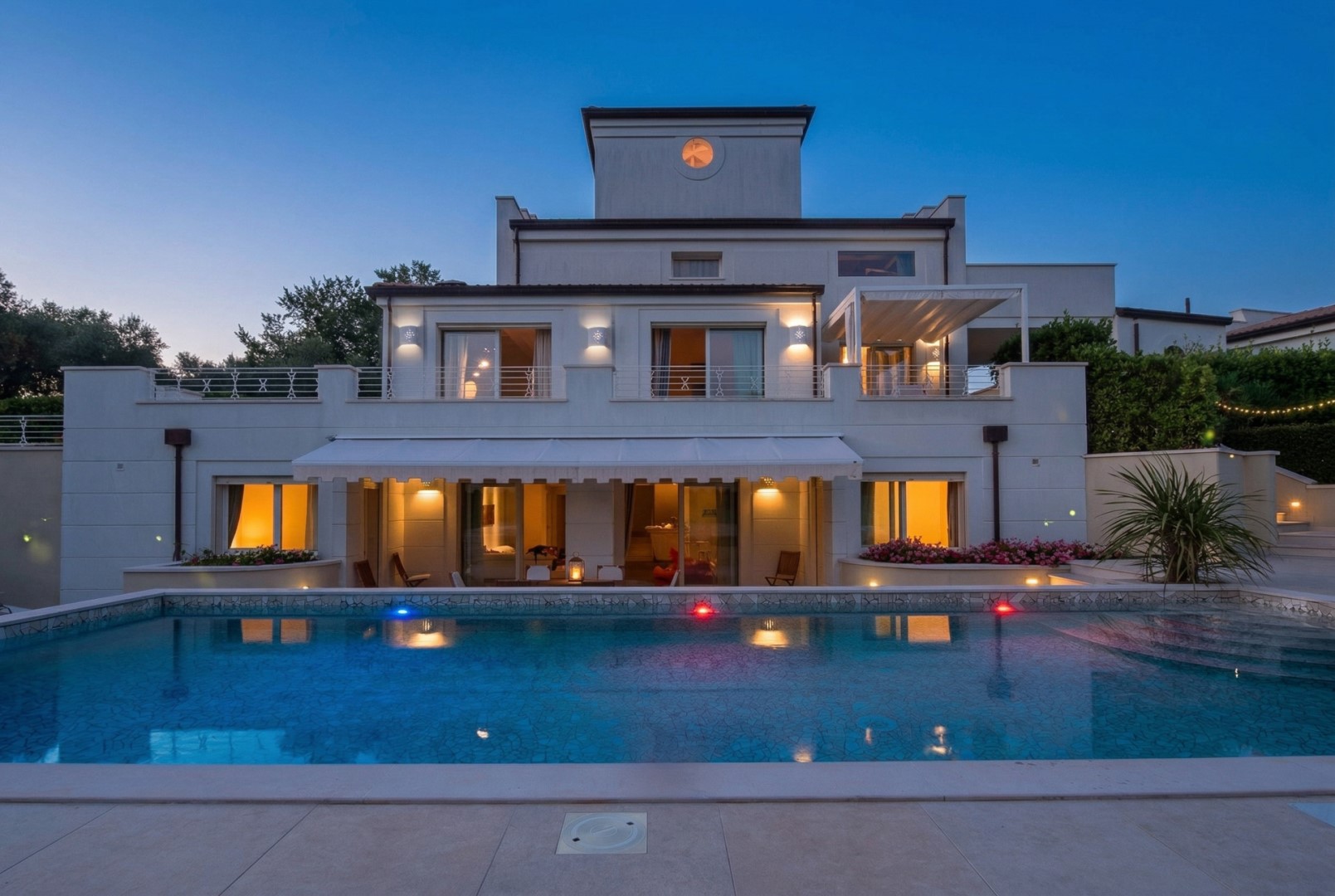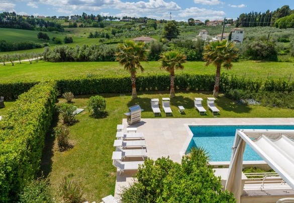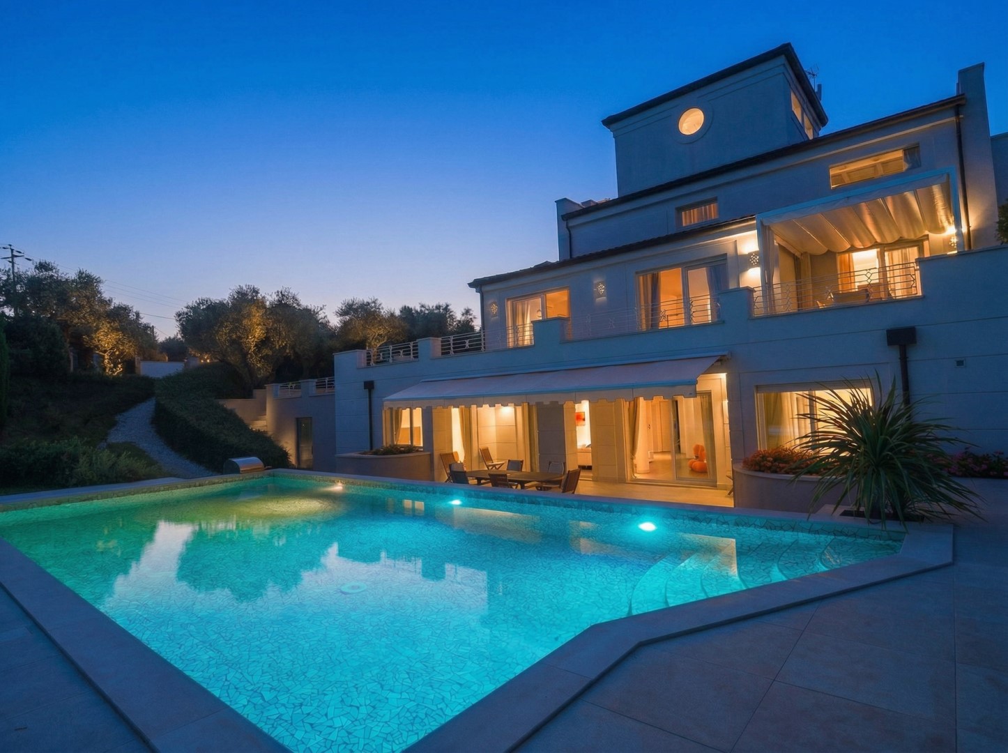 STRUTTURA PRIVATA (solo locazione). Nel contesto delle ville private, senza dubbio villa rappresenta un vero e proprio capolavoro tra le proprietà di Riccione. Sia internamente che negli esterni l’abitazione è curata nei particolari, realizzata per affascinare ad ogni angolo anche l’ospite più attento. La proprietà si sviluppa su circa 460 metri quadrati di superficie, di cui 350 interni, e la recente costruzione ha incorporato una moltitudine di elementi d’arredo della migliore qualità e design. Il risultato lascia senza parole, ogni ambiente si caratterizza per particolari di grande gusto e ricercatezza, mentre i bagni di notevoli dimensioni aumentano la sensazione ariosa e luminosa dell’insieme. Anche esternamente villa garantisce un’esperienza eccezionale, l’attraente piscina piastrellata in bianco è circondata da un lussureggiante e curato giardino, situazione per intrattenimenti vari anche di notte, quando una sapiente illuminazione creata su misura regala un’atmosfera magica. villa è senza dubbio una proprietà di grande livello, una delle scelte più prestigiose a Riccione.