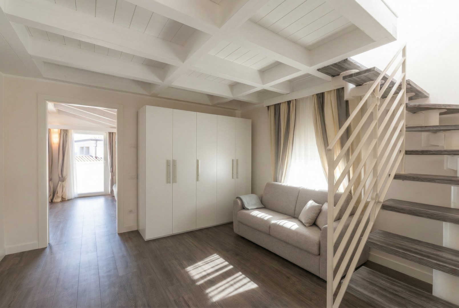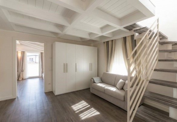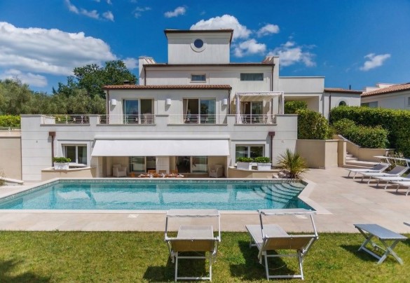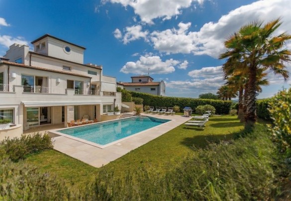 La villa si sviluppa su quattro livelli. L’ingresso principale, posto al piano terra, conduce direttamente nel grande salone suddiviso in zona tv e zona pranzo. Dal salone si raggiunge l’ampia cucina abitabile ed un bagno di servizio. Sia la cucina che il grande salone hanno accesso diretto al terrazzo panoramico e ad un bellissimo portico dove potersi rilassare leggendo un buon libro arredato con tavolo e sedie per suggestive cene all’aperto. Sempre dal salone, attraverso una scala rivestita in marmo, si raggiunge il disimpegno (dotato di divano letto matrimoniale) del primo piano, che è tutto destinato alla camera padronale. Qui ci sono un'ampia camera matrimoniale, una grande cabina armadio ed un bagno con vasca e doccia. Dal primo piano in parte soppalcato, attraverso una scala a vista, è raggiungibile la zona relax climatizzata posta nella torretta. Al livello – 1 che dà accesso direttamente al piano piscina, troviamo invece una seconda zona giorno dotata di ampie vetrate, un bagno di servizio, tre camere matrimoniali di cui due con bagno en-suite con vasca e doccia e cabina armadio ed una con bagno en-suite con doccia.