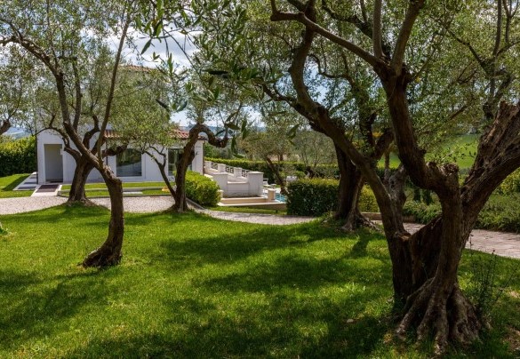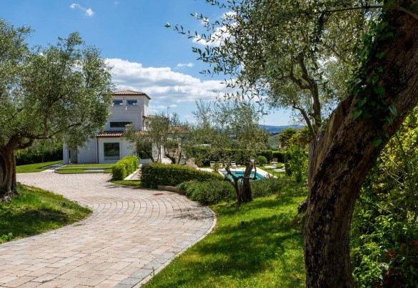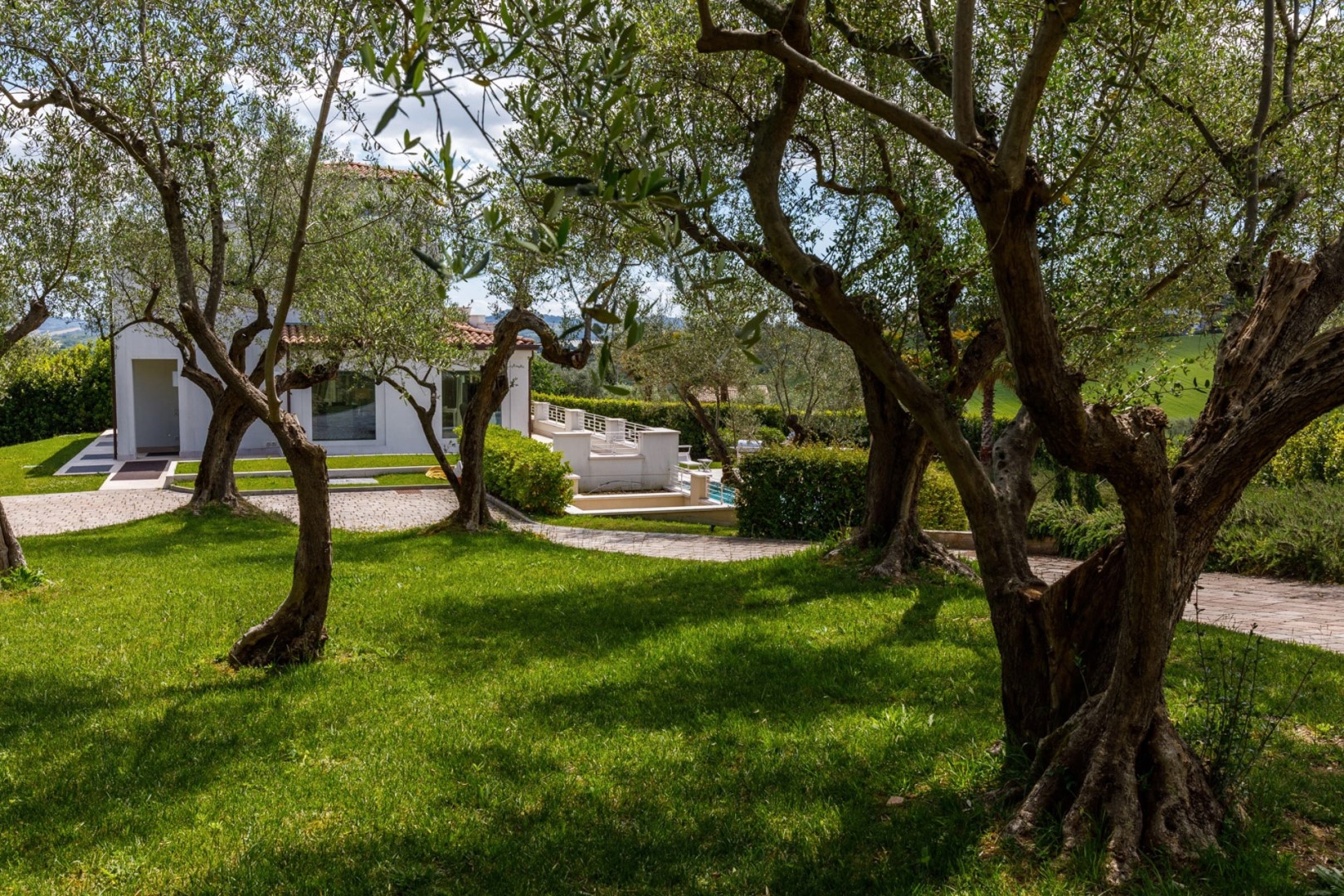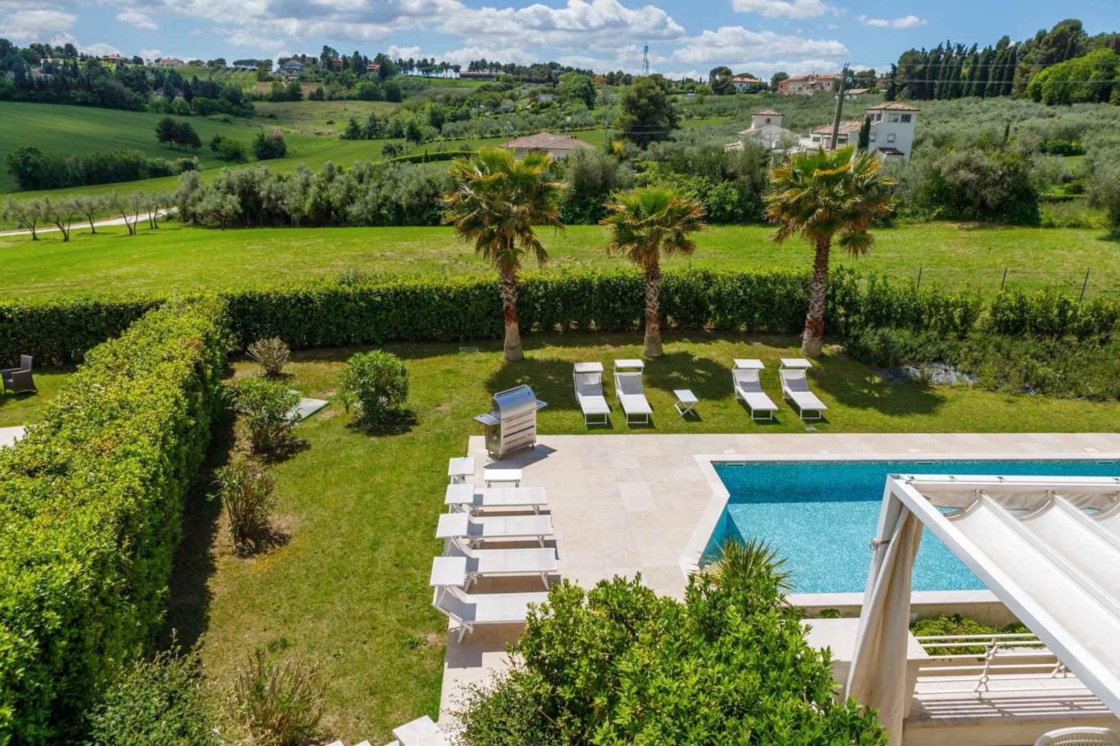 Il giardino di pertinenza della villa, recintato con rete metallica, si estende per circa 2.000 mq. Entrando nella proprietà saremo abbracciati da splendidi ulivi centenari che illuminati la sera renderanno la vista sulla riviera romagnola qualcosa di indimenticabile. La zona di ingresso è completamente piantumata a prato, contornato da particolari aiuole composte da oleandri e da siepi di alloro ben curate. All'interno della villa si trova una zona parcheggio con 3 posti auto, mentre fuori dal cancello carrabile è presente un altro posto auto. Davanti all'uscita del soggiorno si trova la zona pranzo arredata con tavolo e sedie e dotata di tenda motorizzata. Nella parte antistante la piscina, attraverso l'ampia vetrata del salone, si accede al magnifico gazebo che offre un suggestivo angolo relax.